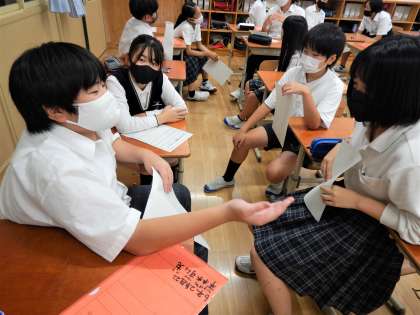 「生きていくため」「生活していくため」という意見が多かったですが、中には「楽しく生きるため」や「人の役に立てるため」などといった自分の人生を豊かにしていくためにあるといった意見も出ていました。今日も活発な意見交流ができましたね!