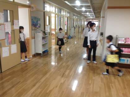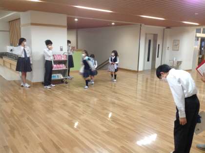7年生が3年生の教室前で あいさつ運動をしました!