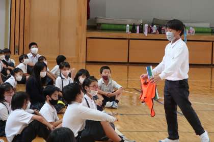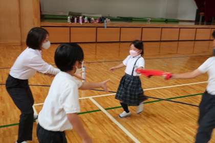 「2年生より遅くなるわけにはいかないぞ!!」と声と,ともに体育館に駆け出しお兄さん,お姉さんとして2年生をしっかりリードし,楽しく遊ぶ姿が見えました。