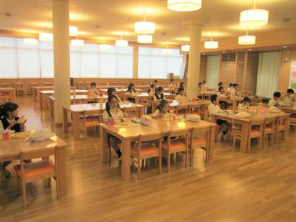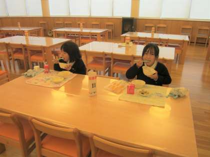 4時間目の食育の学習に引き続き、ランチルームで給食を食べました。