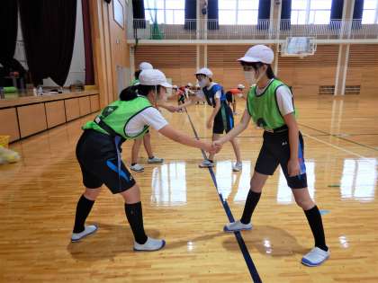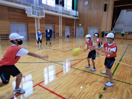 体育では『タグラグビー」の学習が始まっています。タグラグビーは一般のラグビーのようなタックルやスクラムなどの接触プレーがなく、だれもが安全に楽しめるスポーツです。