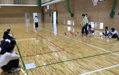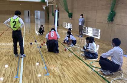 先週の校外学習が延期になり、たてわりグループでボッチャ大会をしました。今日は先週からの続きで、決勝戦と3位決定戦をしました。今日もたくさんのミラクルショットが見られて、大盛り上がりでした!