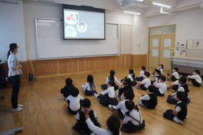 子どもたちは以前に教えてもらったことを思い出しながら話を聞いていました。