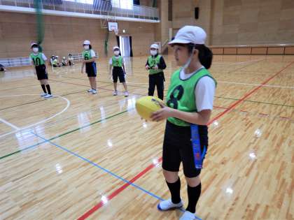 体育の『タグラグビー』の学習も順調に進んでいます。ラグビー特有の「ボールを前に投げる・落とすはNG」というルールにもだいぶ慣れてきました。