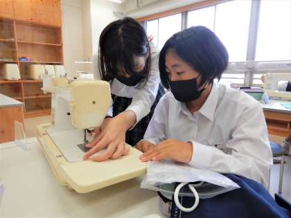 家庭科『思いを形にして生活を豊かに』の学習で行っている、トートバッグ作りも順調に進んでいます。