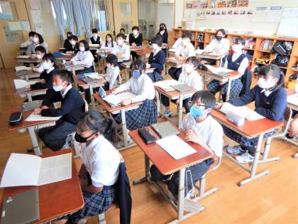 今日の5・6限目に『生徒会本部役員選挙』が行われ、向島秀蓮小中学校の生徒会を代表する、新たな本部役員と専門委員長が選出されました。