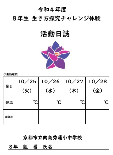 8年生のみなさん,体験したことを毎日,しおりに記入しましょう。是非,良い体験を!