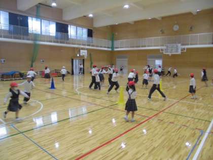 5年生とした遊びは、けいどろ(どろじゅん)!鬼と逃げる人に分かれて、元気いっぱい走って遊びました。5年生のお兄さん・お姉さんは、1年生が怪我をしないように、また楽しく遊べるようにと、少しスピードを落として走ってくれました。そのおかげで、1年生は「楽しかったー!」「また明日もしたいなぁ」とにこにこ。楽しい昼休みとなりました!