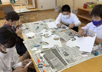 いろんな色でスタンプを押して、どんなかたちになるかためしていました。