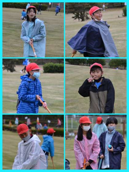 途中霧雨のような雨が降り始めましたが、元気にプレーをしています。