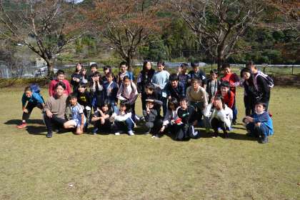 昼の活動に入る前に、学級写真を撮りました。暑いくらいの日差しです。