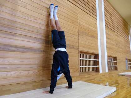 “反転学習”として壁倒立のポイント確認や、実際に練習をしてこられている人が多く、とてもスムーズに学習が進みました。この調子でがんばりましょう!