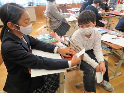 今日も“一人学び”“二人学び”“みんな学び”と学習の形態をかえながら,主体的に学びを深めていくことができていました。