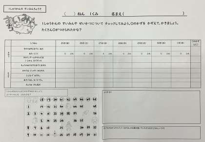 今週から1週間「睡眠調査」を行います。本日、お子さんが「睡眠調査」のワークシートを持ち帰っています。土日はお家で記入する、来週月曜日からは毎日学校に持ってきて記入することになっています。自分で記入できるように声かけをしていただけるとありがたいです。よろしくお願いします。