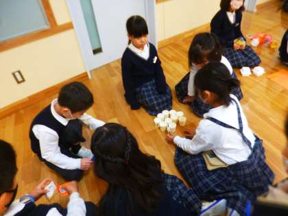 牛乳パックとゆらゆらチームです。