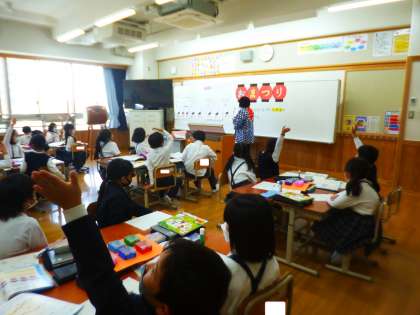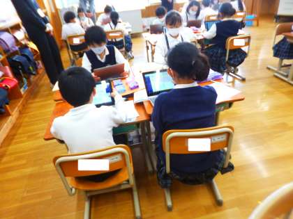 週末の(金)でもあり、またこの時間は普段なら帰っている時間でもあります。また、たくさんの来校者に囲まれながらもとても楽しく学習をしていました。