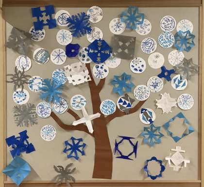 1組あい教室の間にある「1組の木」…12月に入り急に寒くなり「1組の木」もすっかり冬景色になりました。