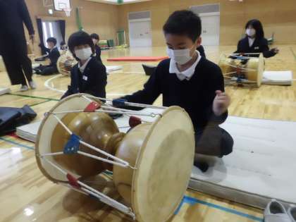 4年生 人権学習「チャンゴ体験」