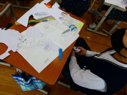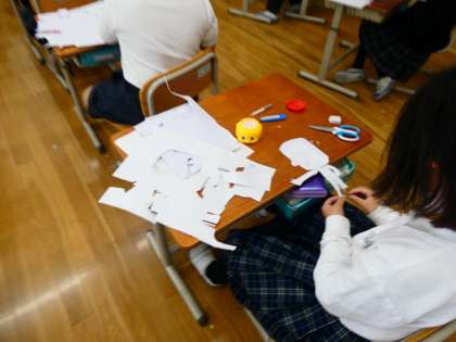 図工の学習では、紙版画を作っています。2年生での学校生活をふり返り、自分が心に残っているシーンを作っています。