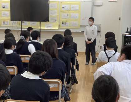 2学期最後の学年集会がありました。2学期の振り返りや3学期の目標、冬休みに楽しみにしていることなどを交流しました。1月のスキー宿泊学習を楽しみにしている生徒が多かったです!