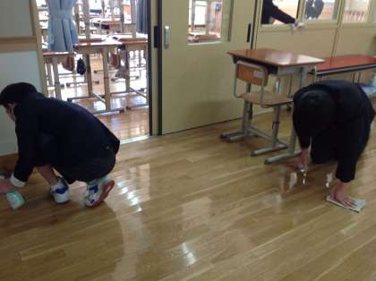 いつもよりいっそう細かいところまで時間と心をこめて掃除した9年生。