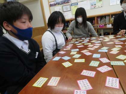 今日の6限目の前半は、2023年初めてとなる「TS(チームステージ)ピアお楽しみ会」が行われ、いつもの交流グループで『百人一首』を楽しみました。