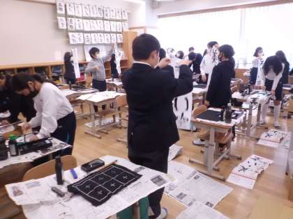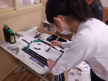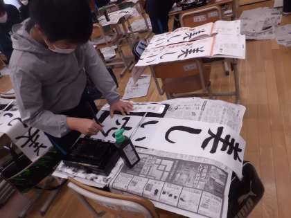 書写の授業で、書き初めをしました。