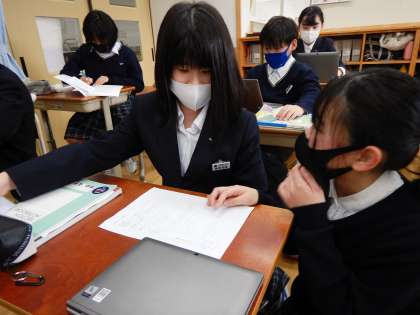 今日は先生や友達とも相談をしながら、文章の構成メモをもとに清書を書きました。