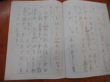 ノートには発表しやすいように、色をつけて「ここはゆっくり大きな声で!」など、しるしをつけていました。