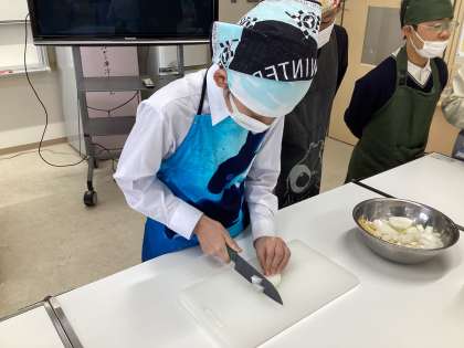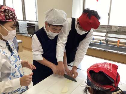今日収穫した大根を使ってお味噌汁を作りました。子供たちからは「いつもたべているお味噌汁よりおいしい」と言っている子や「大根が甘くておいしい」などとても喜んで食べていました。自分たちが育て,収穫し調理したお味噌汁は一味違ったものになっていたようです。