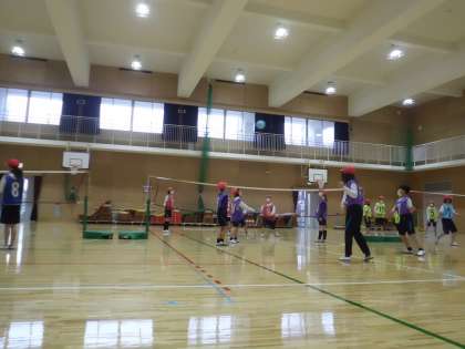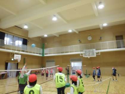 ソフトバレーボールの学習をおこなっています。