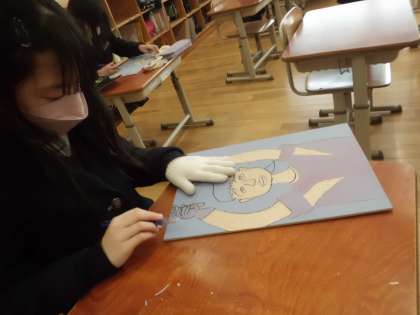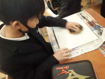 慎重に彫刻刀で彫る作業をしている人もいれば
