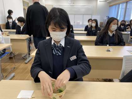 1・2時間目に4組、3・4時間目に5組が茶道体験を行いました。
