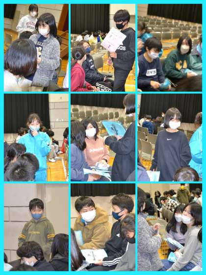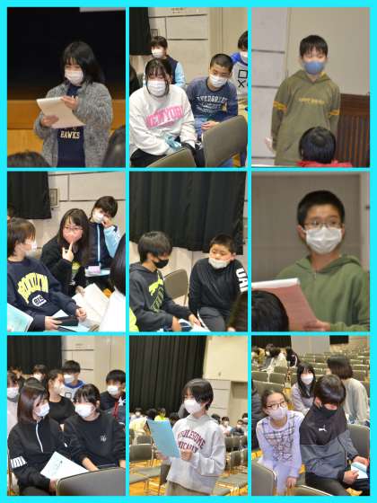 今日全体で動くのは、これが最後となる「1日の振り返り」です。班で振り返りをし、それをクラスでシェアし、さらに全体で交流します。明日に生かそうと真剣に意見や感想を述べあっていました。