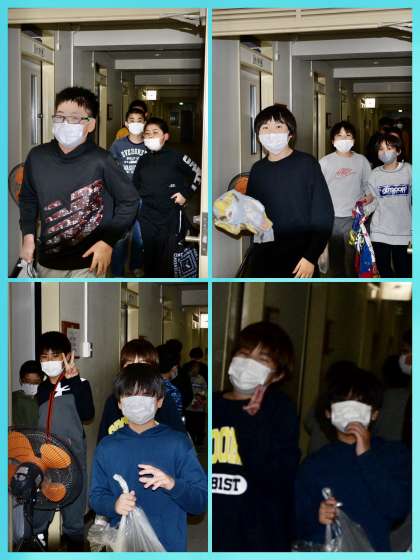 部屋に戻り、生徒たちは入浴及び就寝準備をしています。大きなトラブルもなく、今日1日を終えられそうです。写真は入浴に向かう男子生徒。「しっかり洗うんだよ」と先生の声が聞こえてきました。