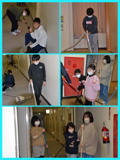 朝の清掃です。これが宿泊施設と研修施設の違いというところでしょうか。みんなちゃんとやってます。