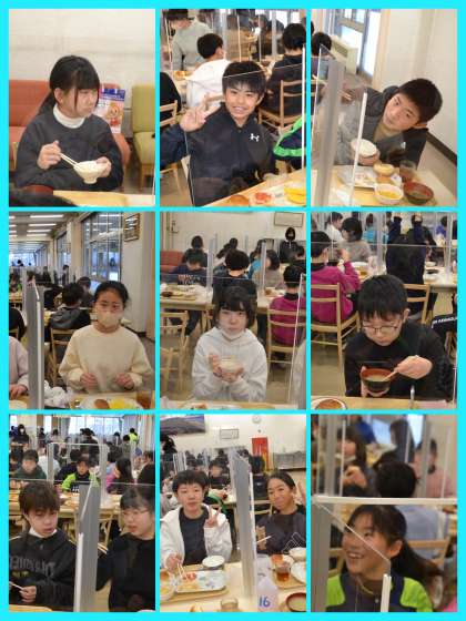 生徒たちはグループに分かれて、スキー研修を行っています。グループごとにインストラクターがつき、レッスンをしてくださっています。その間に私はここまでの写真をお届けします。まずは、朝食の様子からどうぞ。みんな元気そうです。