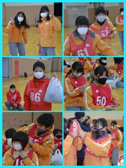スキーウエアを初めて着る生徒もいますので、雪が入らないような着方等の説明の後、実際に着て、いよいよ外に出ていきます。
