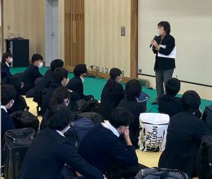明日,2月10日(金)〜12日(日)に京阪神私学統一入試が行われます。前日の今日,9年生は集会を行い、前日指導を行いました。緊張感がある中の集会でしたが,校長先生からの温かい激励の言葉を聞き,みんな笑顔になっていました。その後,進路担当より今日の過ごし方,当日の朝についての確認事項を聞きました。