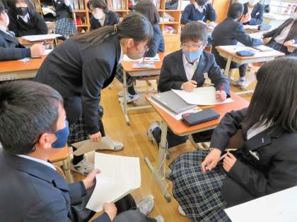 これまでの学習でも『仕事・働く』ということについて考えてきましたが、今回の体験を経て「働く」に対する自分の思いが大きく変わったという生徒が多かったです。
