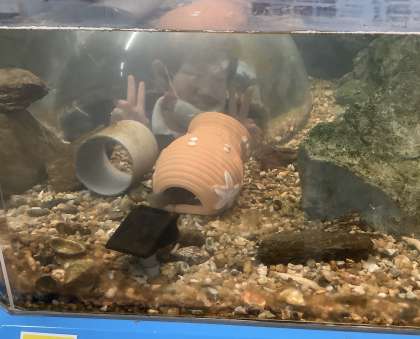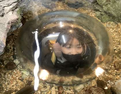 トンネルをくぐって水槽の中にいる気分を味わっていました。