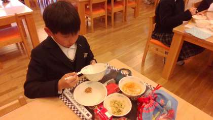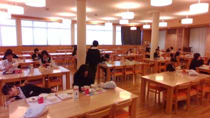 いつもは教室で食べていますが、今日はランチルームで食べました。
