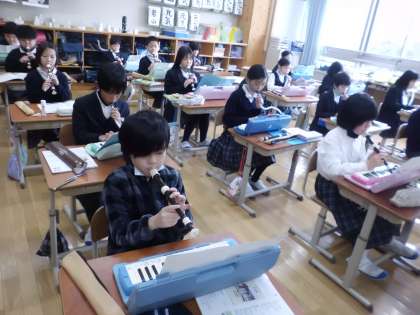 4年生は、音楽の学習で合奏をします。