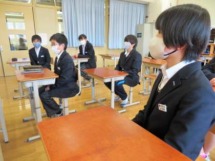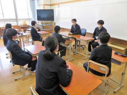 3月16日に予定されている7年生の『立志式』の取組みを始めるのに先立って、代表委員の生徒が休み時間に集まって説明を受けました。
