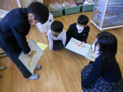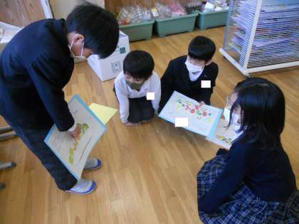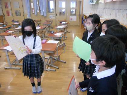 英語の歌や、友だちとのやりとり、紹介やお店屋さんごっこなど