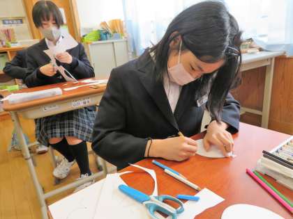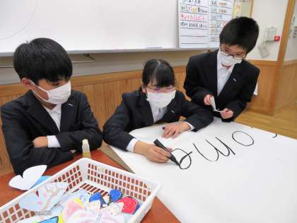今日の学活では、来週13日(月)に予定されている『9年生を送る会』に向けて、6年生からのプレゼントの制作をしました。