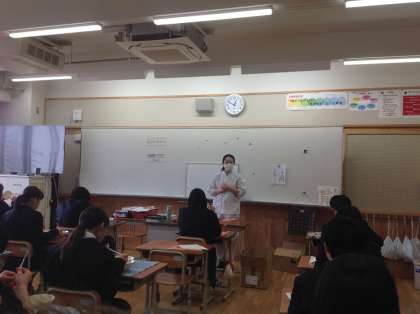 その中から,プリプリ中華いためなど10品の作り方が載った「おすすめレシピ」を,栄養教諭の廣瀬先生が9年生全員にプレゼントしてくださいました。表紙に「食は命のもとです。食べるものを選ぶことは,自分の命,生き方を選ぶことです。」と書かれています。