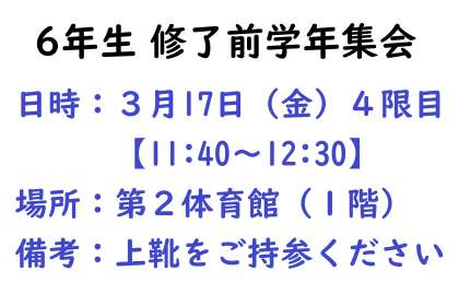 6年生 明日は『修了前学年集会』です!
