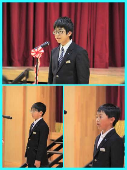 昨年は、リモートでしか参加できなかった5〜6年生も式に参列し、7年生の宣言に耳を傾け、代表生徒がリーダーとしてお世話になった7年生にお礼の言葉を贈りました。