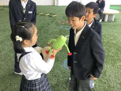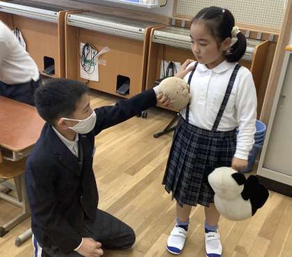 ぬいぐるみを見つけた1年生は大喜びでした。5・6年生も優しくていねいに説明することができました。